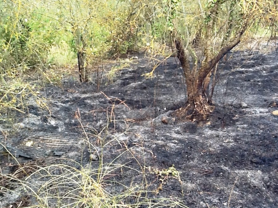 SAN CASCIANO – Incendio di sterpaglie in mezzo a un'oliveta in via degli Scopeti, all'altezza del cimitero di San Casciano (nelle foto sopra gli esiti).