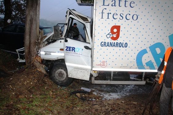 Brutto incidente all’alba di oggi. Erano circa le 6 quando l’autotrasportatore di una ditta del latte, A. C. 44 anni di Greve in Chianti, stava percorrendo la via Certaldese in direzione San Pancrazio per le consegne giornaliere, quando improvvisamente (probabilmente complice la pioggia) è andato a sbattere violentemente contro un grosso cipresso.