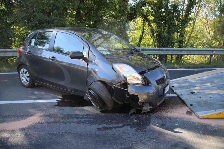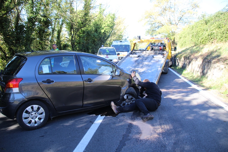 E’ stato necessario anche l’intervento della Global Service per ripulire l’asfalto dall’olio perso dalla vettura.