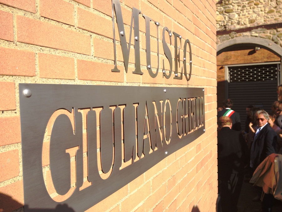 Poi, la scopertura delle targhe e della scritta che si staglia con il suo acciaio sulla facciata color cotto del Museo: "Museo Giuliano Ghelli", tre parole, una emozione infinita.