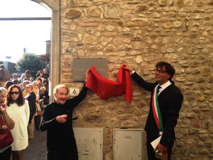 Accanto a lui il sindaco di San Casciano Massimiliano Pescini: prima è stata scoperta la scritta sulla facciata interna del Museo, poi la targa su via Lucardesi; infine si è entrati e all'ingresso si è trovata un'opera di Giuliano, la sua biografia e uno splendido ritratto fatto anni da dal Maestro Alfredo Futuro. Accoglieranno visitatori e turisti del Museo sancascianese.