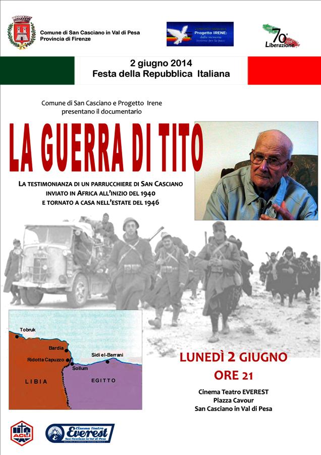SAN CASCIANO – In occasione della festa della Repubblica Italiana, lunedì 2 giugno, e in concomitanza del 70° anniversario della Liberazione, il Comune di San Casciano e il comitato per la Memoria “Progetto Irene” presentano il documentario “La guerra di Tito Leoncini”.