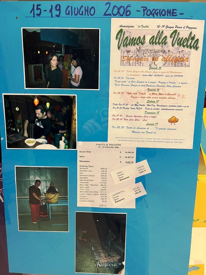 Il primo evento fu organizzato nel Piazzone, con musica latino americana e un piccolo bar. Da quell’anno la Vuelta continuò a organizzare cene, feste e serate, unendo divertimento e solidarietà e diventando un modello per altre iniziative nella zona.
