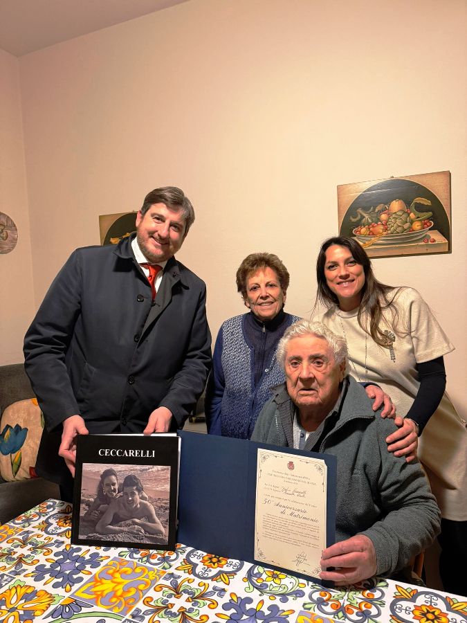 Dopo aver festeggiato con le coppie chiantigiane, di origine o di adozione, che hanno raggiunto l’auditorium di ChiantiBanca il sindaco Ciappi ha voluto fare una “consegna a domicilio” della pergamena dedicata agli innamorati d’oro ed è andato a congratularsi direttamente a casa degli sposi che superano i 70 anni di matrimonio.
