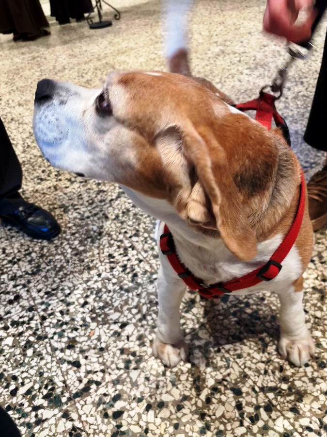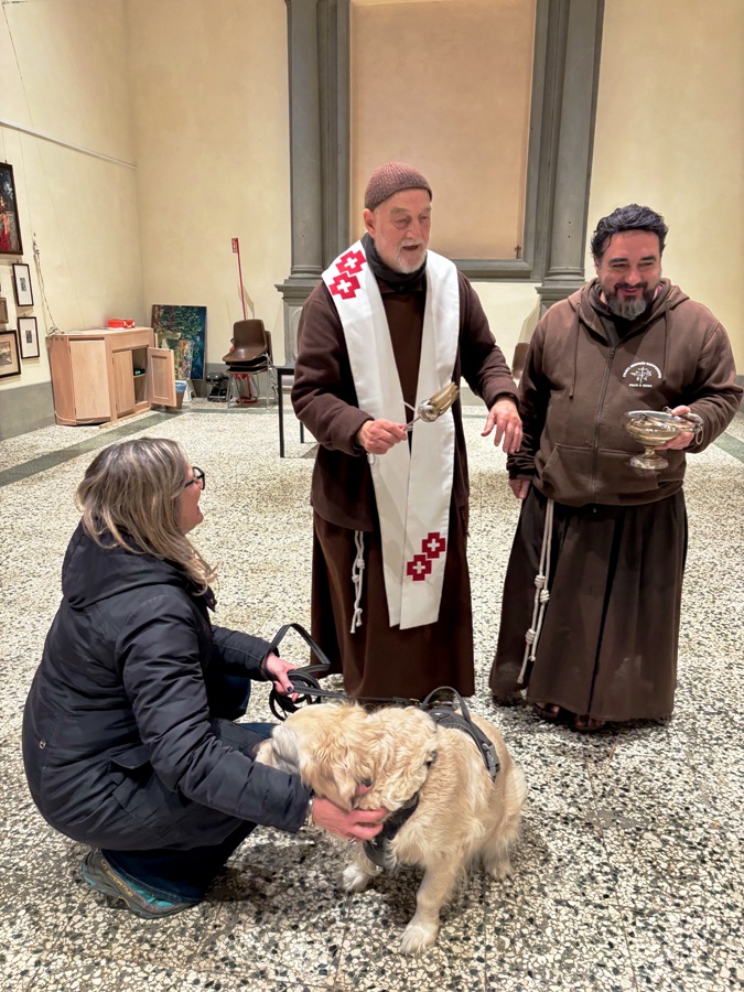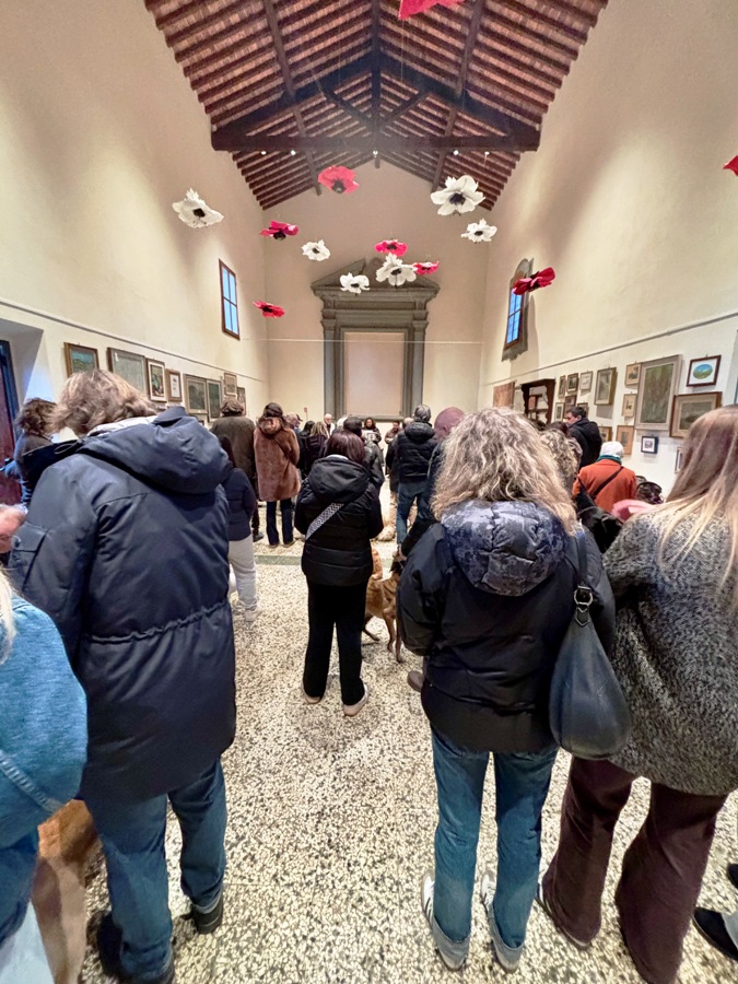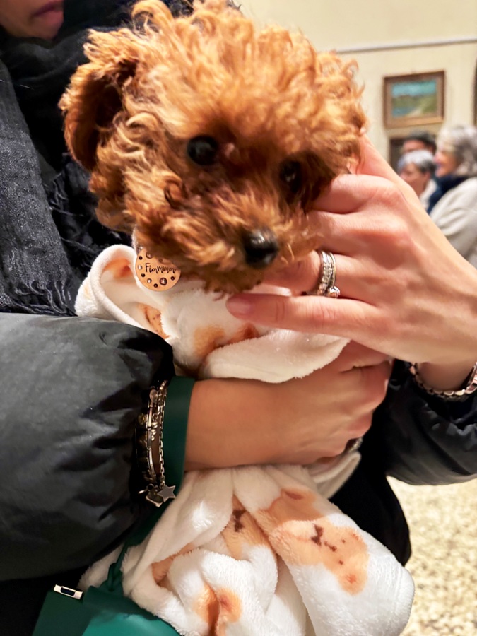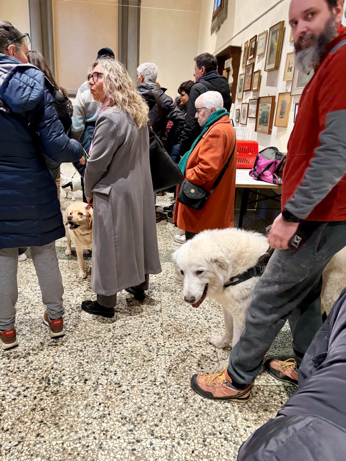 In mezzo al Cappellone troviamo impettita fra i suoi padroni Musa, una femmina di Pastore Belga con dei grandi occhi espressivi. C’è poi Mirtillo, un barboncino di sei anni che viene da Empoli e Gennarino di soli quindici mesi.