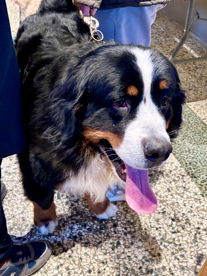 Paola, una delle “Donne del Cappellone”, si presenta anche quest’anno con Momo, il suo Bovaro Bernese, un concentrato di forza e vitalità ma anche di tanta dolcezza.