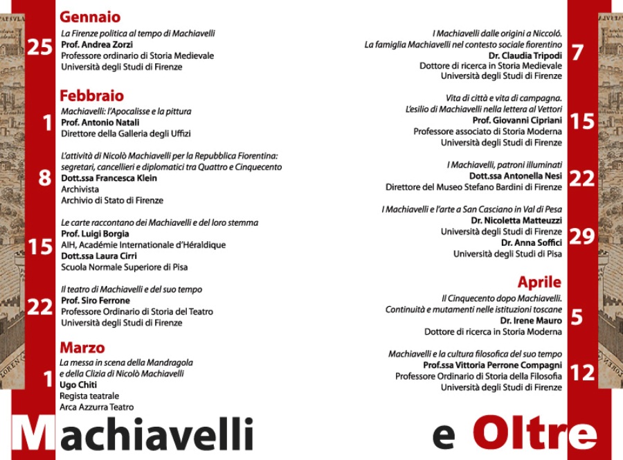 Dopo lo strepitoso successo delle nove conferenze intitolate "L'Anno del Principe", che per nove settimane consecutive hanno registrato il tutto esaurito al Teatro Niccolini, da gennaio ad aprile in biblioteca comunale tocca a "Machiavelli e oltre".