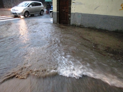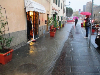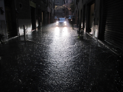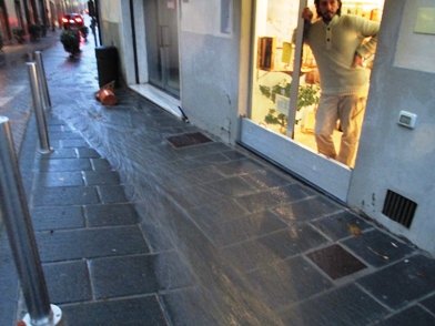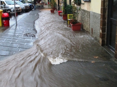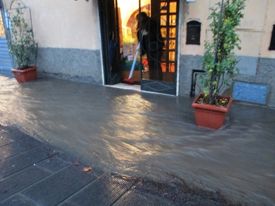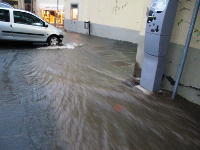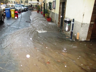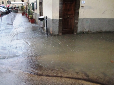 Via Borgo Sarchiani completamente allagata, piazza delle Erbe e Piazza della Repubblica il marciapiede è diventato un torrente a causa delle fogne completamente otturate dallo sporco portato dai giardini di piazza della Repubblica.