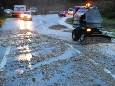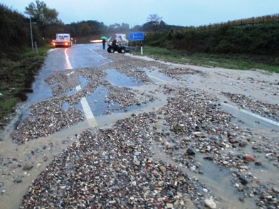 Mentre non accenna a smettere di piovere, a San Casciano si sta ripulendo la carreggiata su via Certaldese (località Ponterotto), dove sassi e detriti hanno fortemente rallentato il traffico.