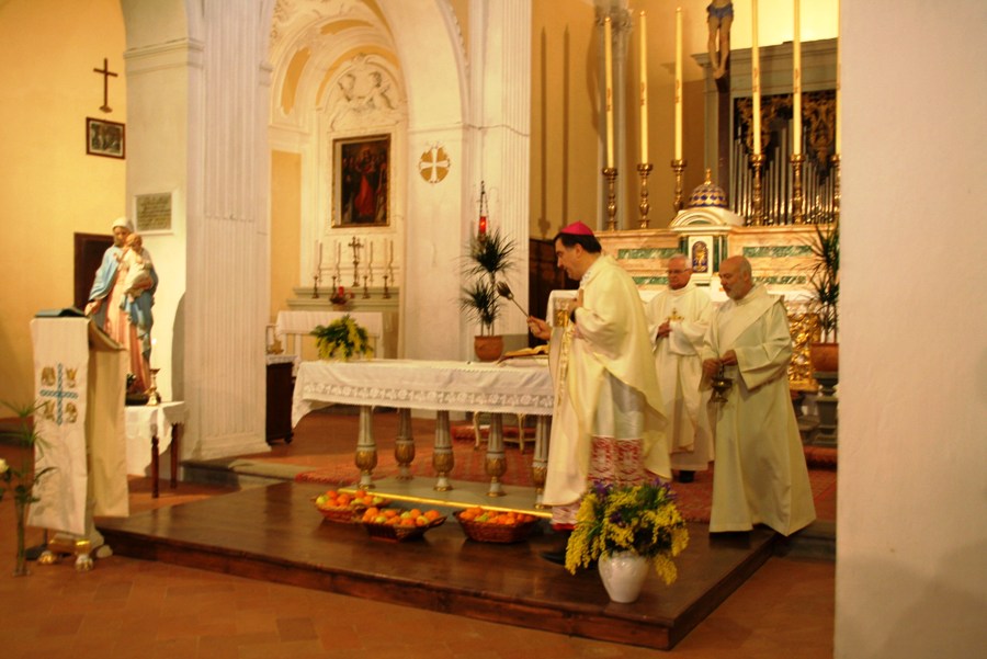 Ha celebrato la funzione il vescovo ausiliare di Firenze monsignor Claudio Maniago assieme a monsisngori Giancarlo Corti e il diacono della Pieve.