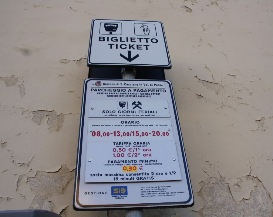 Parcheggio Stianti: sosta gratuita di 30 minuti con esposizione del ticket rilasciato dai parcometri.