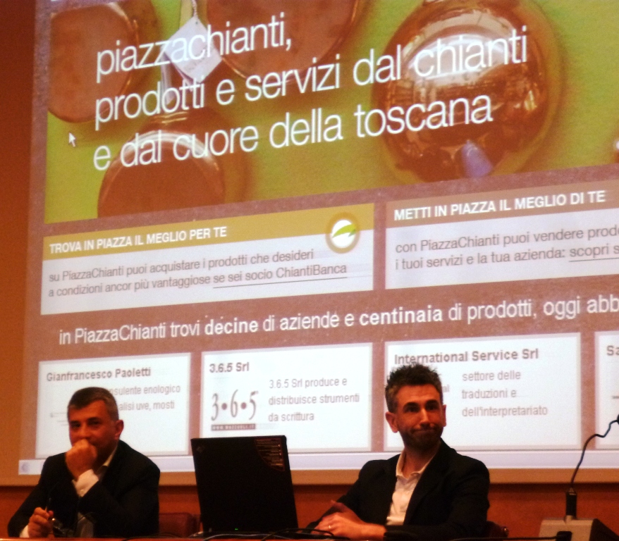 Mercoledì 18 giugno, nell’Auditorium ChiantiBanca di San Casciano, il direttore generale Andrea Bianchi, insieme allo staff che seguirà il progetto ha presentato per la prima volta a una plaeta di imprese molto interessate PiazzaChianti.it. L'incontro si è concluso con il saluto del presidente dell’istituto di credito Claudio Corsi.