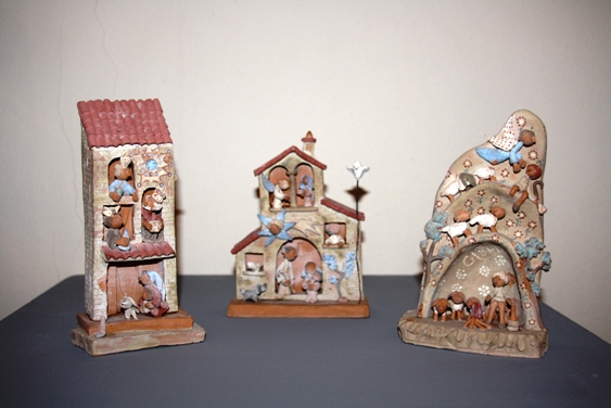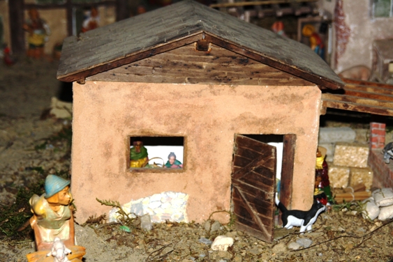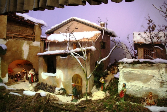 In uno in particolare si nota che la capanna è coperta da un tetto fatto di tegole, attrezzi da lavoro della nostra campagna. Il ruscello, la neve sui tetti, le flebili luci dentro le case, per poi concentrare il tutto su quella capanna, lì dove nella notte del 25 dicembre è stato deposto il Salvatore, Gesù Bambino.