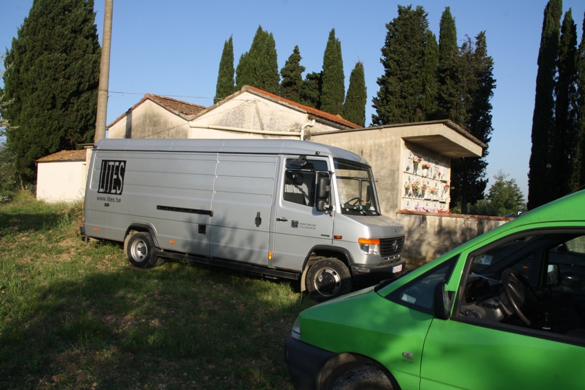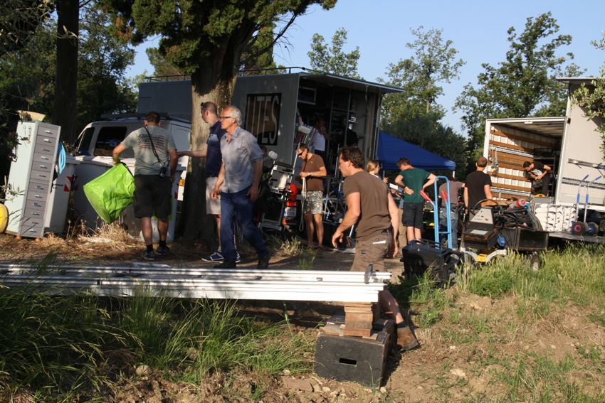 Si è partiti di buon'ora dal cimitero di Campoli (il servizio fotografico che trovate qui sopra è di Antonio Taddei), un gruppo di case lungo la strada che collega Montefiridolfi alle Quattrostrade: qui la troupe, capitanata dal regista Johan Nijenhuis.