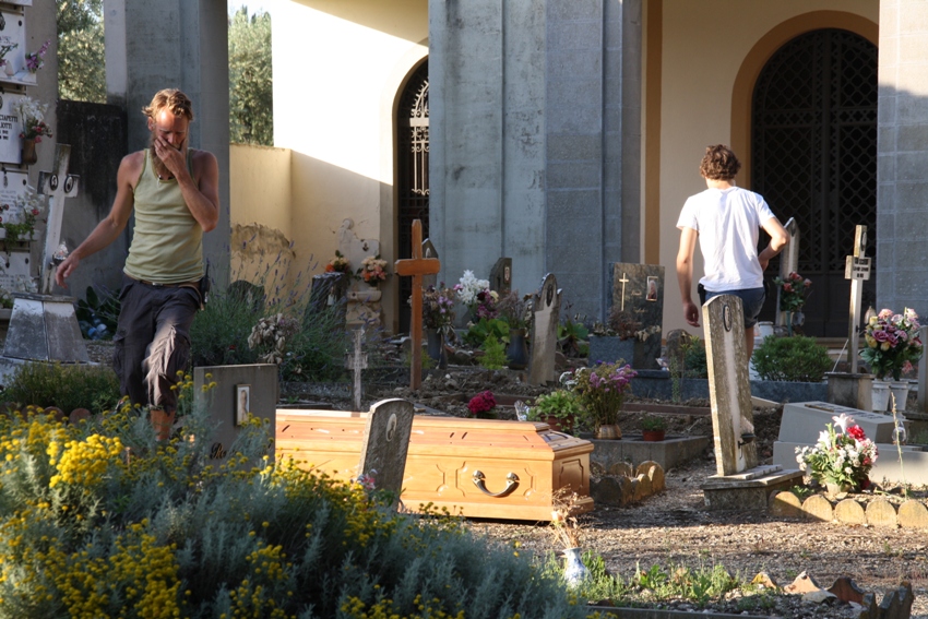 Un prete, una bara, un funerale: inizia così il film, una produzione italo olandese che vede coinvolte la 2House Production e la 360Degrees film di Venezia. Nel cimitero, ripreso sia all’interno che all’esterno, è stata effettuata la simulazione di un funerale.