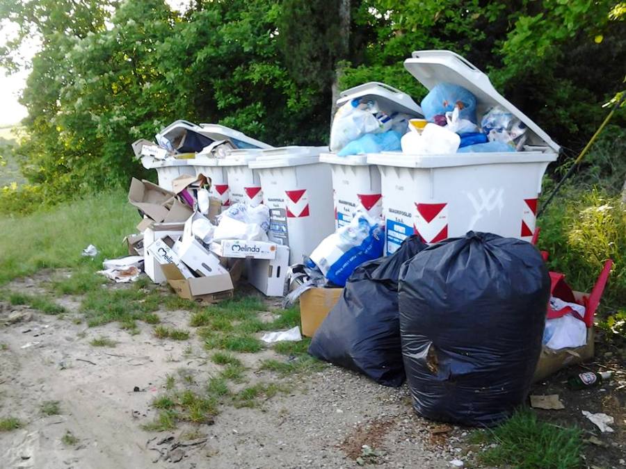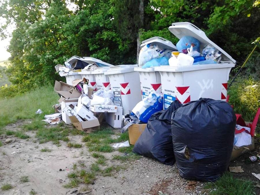 SAN CASCIANO – Le foto che vedete qui sopra le ha inviate alla redazione del Gazzettino del Chianti una lettrice, e ritraggono i bidoncini in via San Piero di Sotto (zona delle Corti).