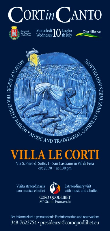 SAN CASCIANO – Mercoledì 10 luglio (dalle 20.30) nell’incantevole cornice di Villa Le Corti sarà possibile rivivere le suggestioni di una festa rinascimentale grazie al coro Quodlibet di San Casciano, che presenterà un ricco repertorio polifonico fatto di ritmi accattivanti e vivaci melodie con testi ricchi di richiami alla sfera erotico-amorosa, al risveglio primaverile dei sensi e all'ebbrezza del vino.