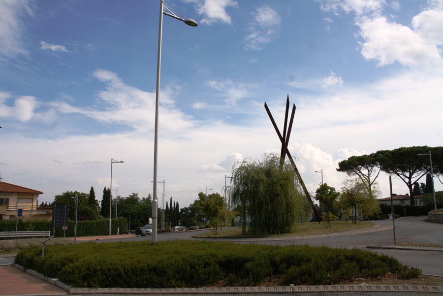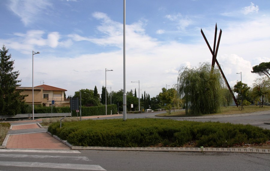 E’ accaduto alcuni giorni fa in via Cassia per Siena, all’altezza della rotatoria di ingresso al capoluogo (nelle foto il luogo del furto), dove è collocata l’opera  artistica di Mauro Staccioli.
