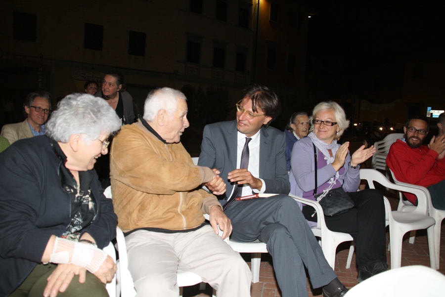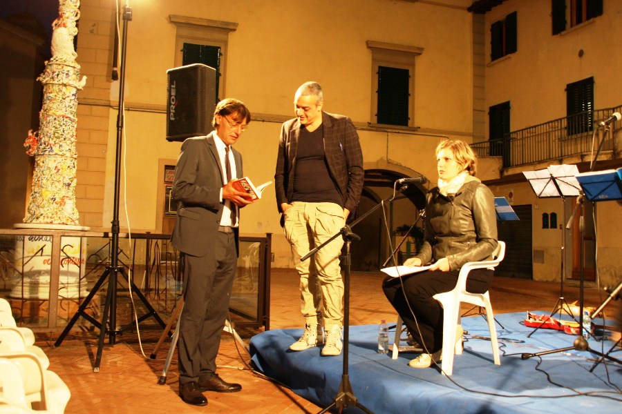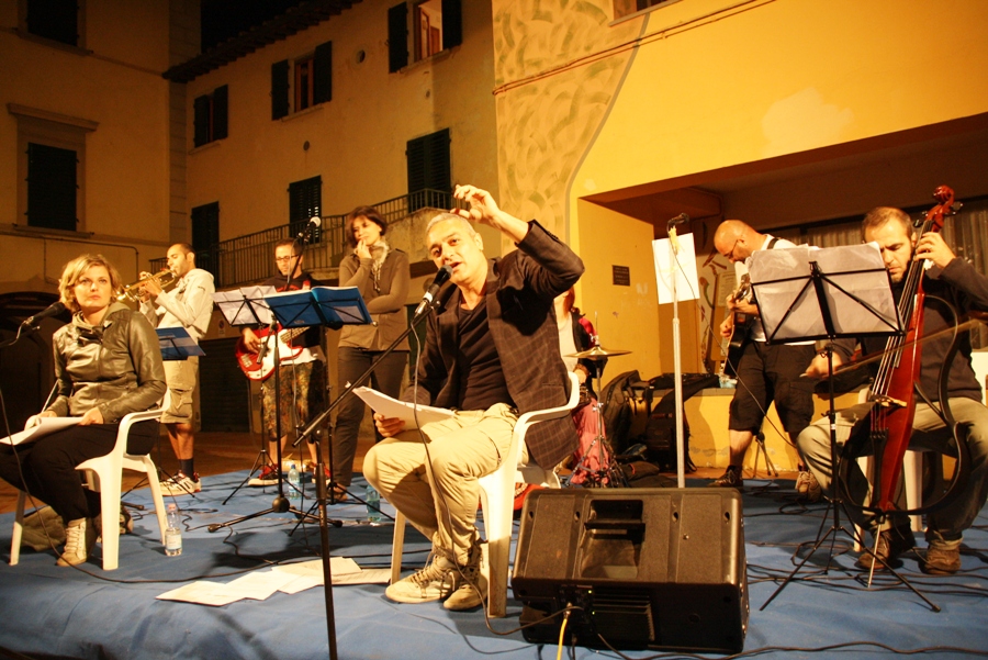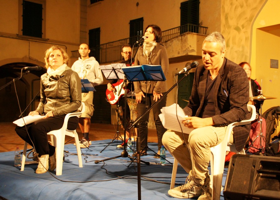 Nonostante la partita in tv della nazionale di calcio e una semifinale di pallavolo disputata alla casa del popolo, non sono state sufficienti le sedie dove piano piano hanno trovato posto le persone tenaci (presente anche il sindaco Massimiliano Pescini) che hanno sfidato anche la brezza della notte pur di ascoltare il reading-concerto tratto dal libro “Ribelli” (Collana GrandAngolo) autori Chiara Brilli, Massimo D’Orzi, Domenico Guarino, Paola Traverso.