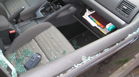 Quando è tornato alla macchina, l’amara sorpresa: il vetro dell’auto era in frantumi (la foto sopra è d'archivio) e i malintenzionati avevano arraffato una borsa custodita all’interno della vettura. Una borsa al cui interno non c’erano valori particolari, se non importanti documenti di lavoro.
