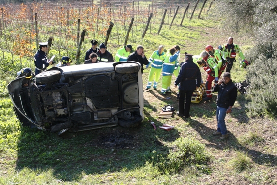 L’auto della donna (F.M., 50 anni residente a Scandicci), affrontando la discesa di una strada sterrata è andata a sbattere contro un cipresso, per poi carambolare ai piedi di una vigna, rimanendo così nell’auto per un tempo che per lei sicuramente sarà stato infinito.