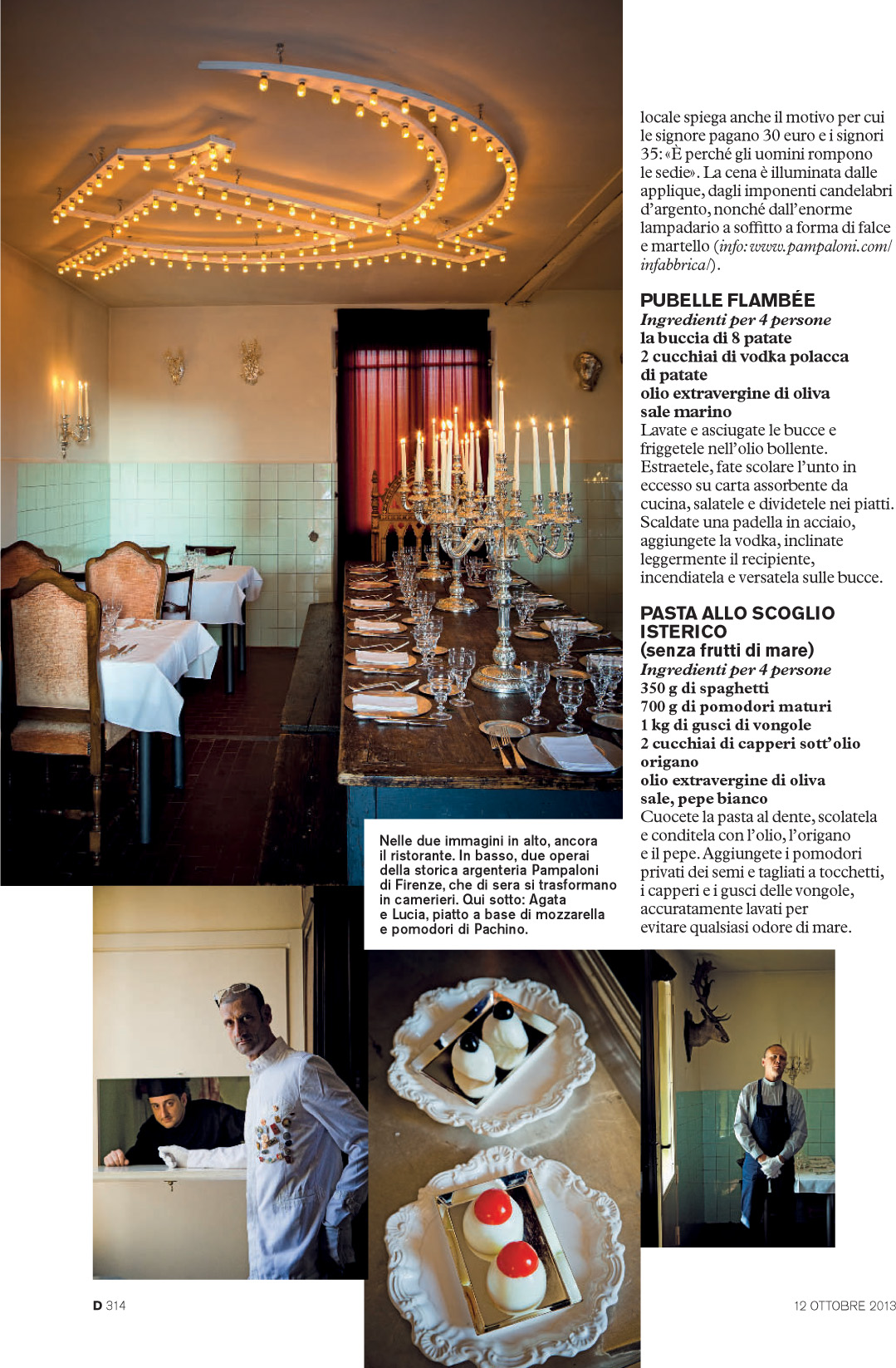 E' la storia dell'argenteria fiorentina in cui Roberto lavora: attiva (e lo è tuttora) dal 1902, di proprietà dei fratelli Pampaloni, la sera si trasforma. Insomma, la sala mensa dove gli operai mangiano di giorno, la sera diventa un ristorante!