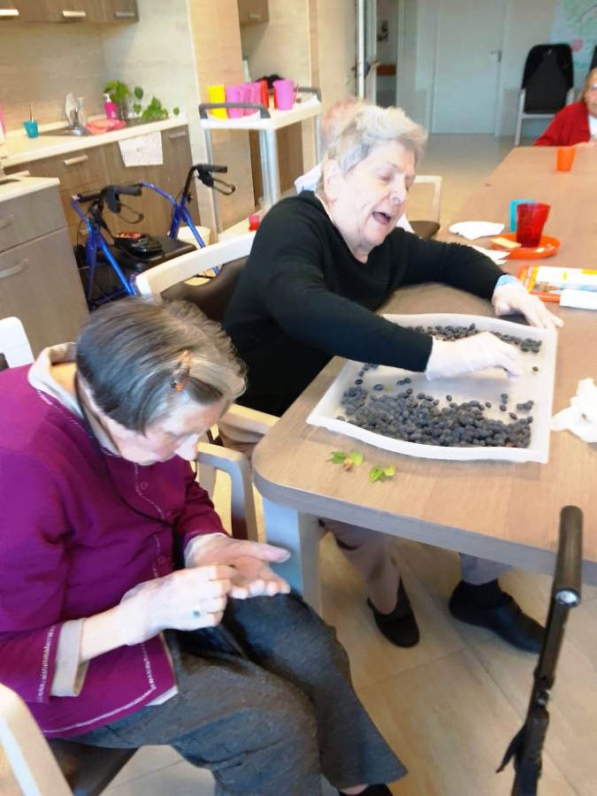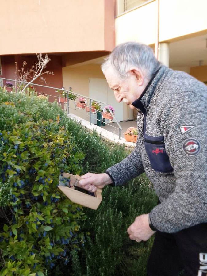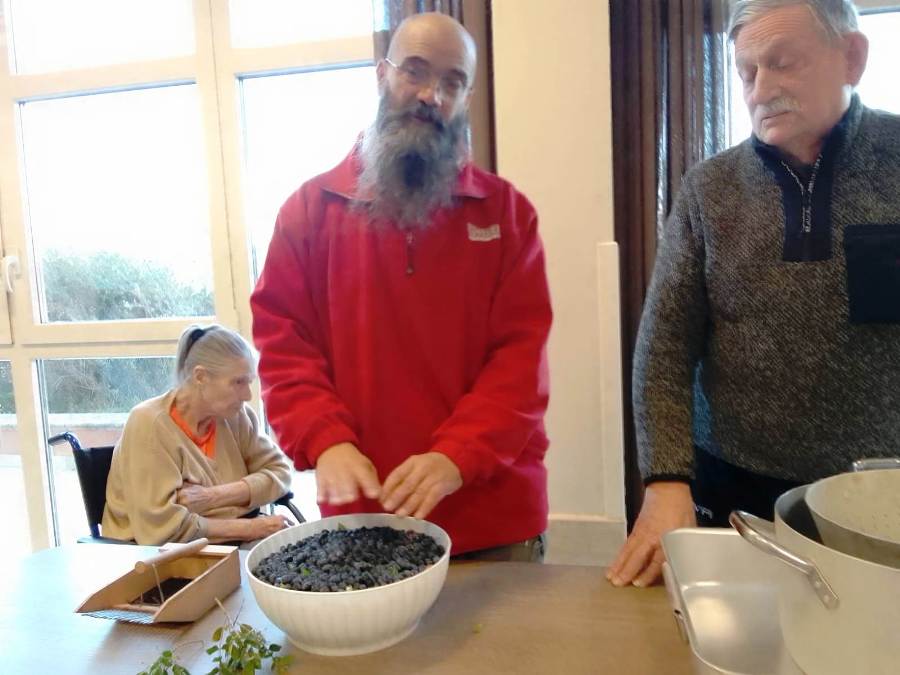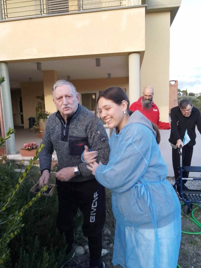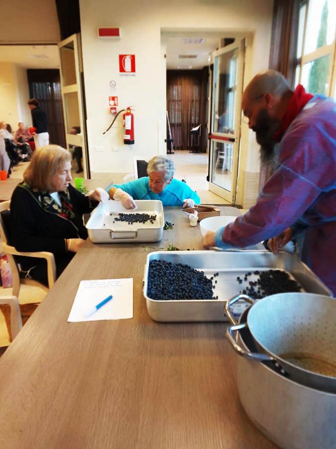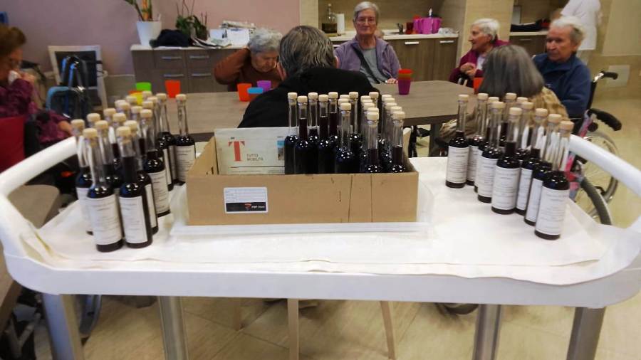 Con gli ospiti di Villa San Martino che, tutti fieri e soddisfatti, hanno omaggiato i loro parenti di questa deliziosa bottiglietta: frutto del loro impegno e della loro partecipazione.