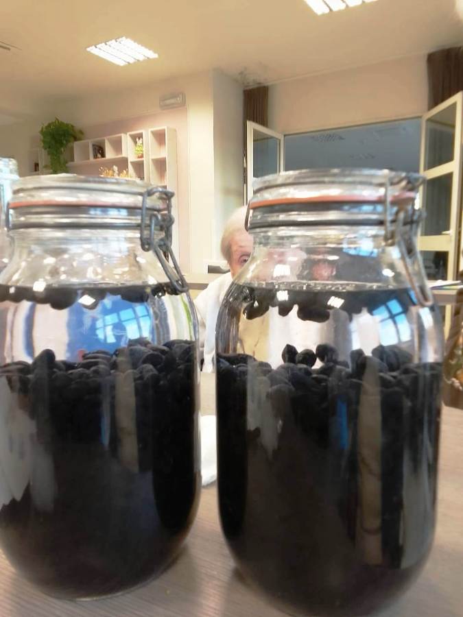 “Dopo averle lavate – prosegue Masini – abbiamo messo le bacche in degli appositi contenitori di vetro, con l’alcol, a fermentare. Sono rimaste così per un intero mese, al buio”.