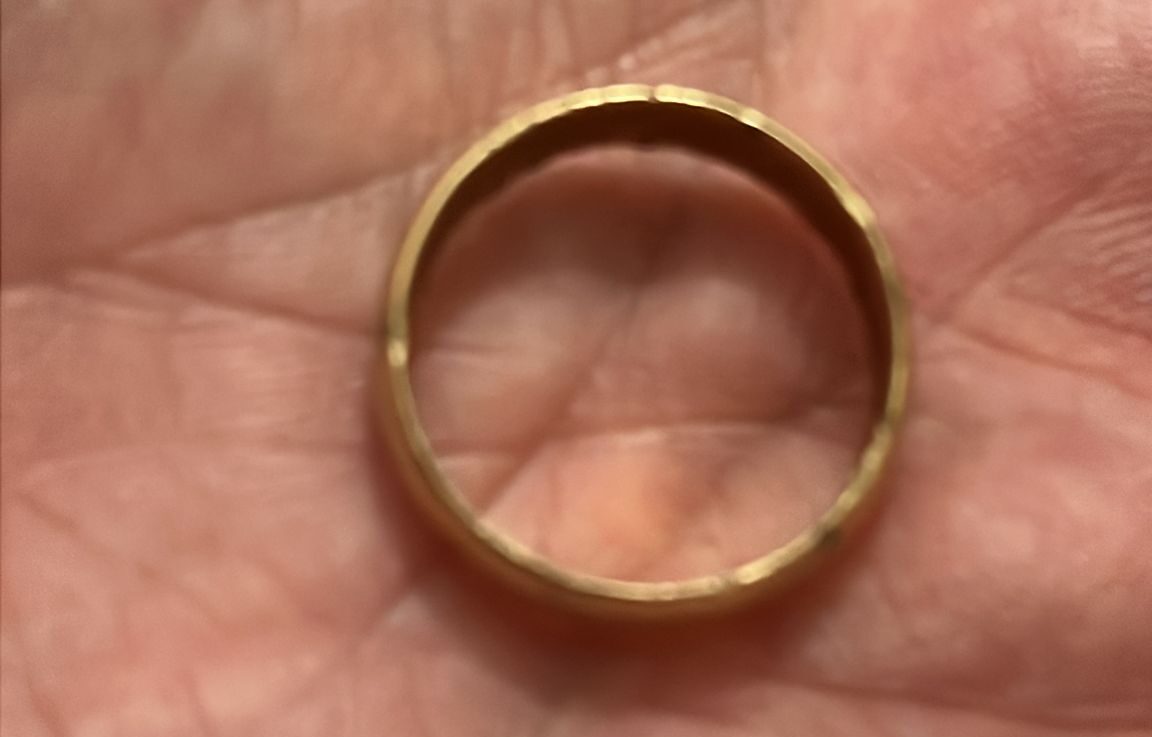 SAN CASCIANO – La fede nuziale che vedete nelle due foto è stata trovata nella mattina di domenica 29 marzo (giorno del Carnevale Medievale Sancascianese) nei giardini del Piazzone, a San Casciano.