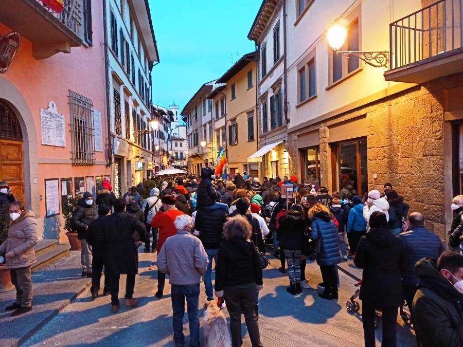SAN CASCIANO – “Pace, pace, pace!”. Un coro di voci, presenti, lo ha intonato all’unisono, lo ha testimoniato domenica sera, con un corteo che ha sfilato per le vie del centro storico di San Casciano, con i colori, i valori, le bandiere, le parole della pace.