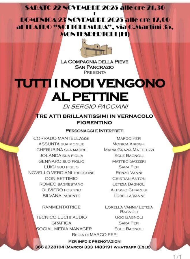 SAN PANCRAZIO (SAN CASCIANO) – Dopo oltre 30 anni, a San Pancrazio una nuova compagnia amatoriale di attori è pronta a riportare in scena la commedia “Tutti i nodi vengono al pettine” di don Sergio Pacciani.