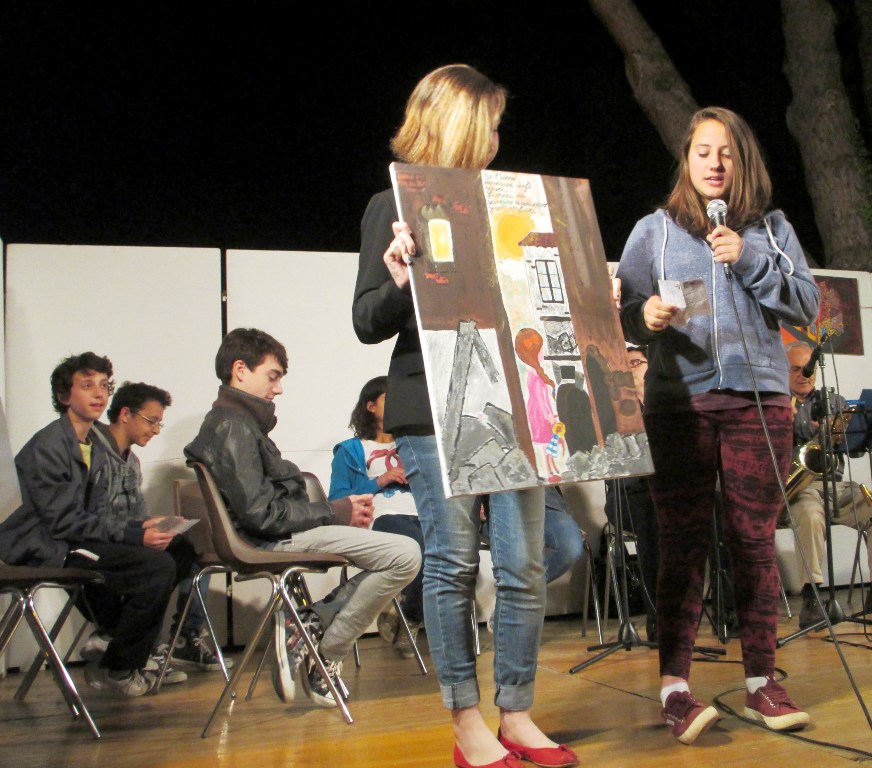 Che hanno eseguito quattro brani musicali, dopodiché sono stati presentati una parte dei quadri eseguiti dagli studenti che saranno esposti in una mostra all’interno del municipio, questi accompagnati da brani suonati dal gruppo musicale della Filarmonica “Vincenzo Bellini” di Scandicci.