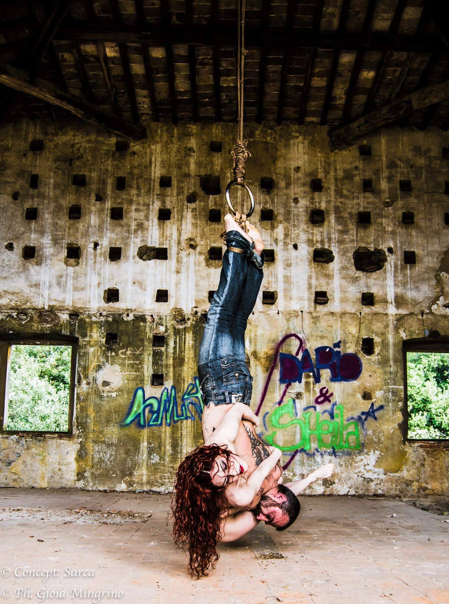 “La mia chiave di lettura personale – precisa Luca – è puntata su un’armonizzazione artistica del contesto con la figura umana. Vorrei creare un legame tra il senso attualmente generalizzato del bondage (legatura n.d.r.) e la disciplina in sé. Il contesto armonizzato smorza l’impatto sul pubblico e lo apre ad un approccio diverso, più profondo di quanto ci si aspetti”.