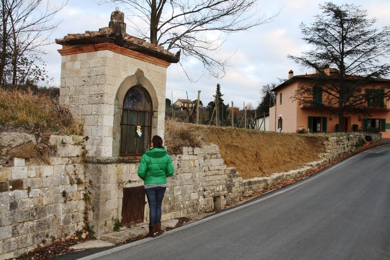 Facciamo due esempi: il tabernacolo che si trova a San Piero di Sopra tra Villa Le Corti e la Calcinaia con all’interno un bassorilievo in cotto raffigurante San Pietro, versa in pessime condizioni e in totale abbandono.