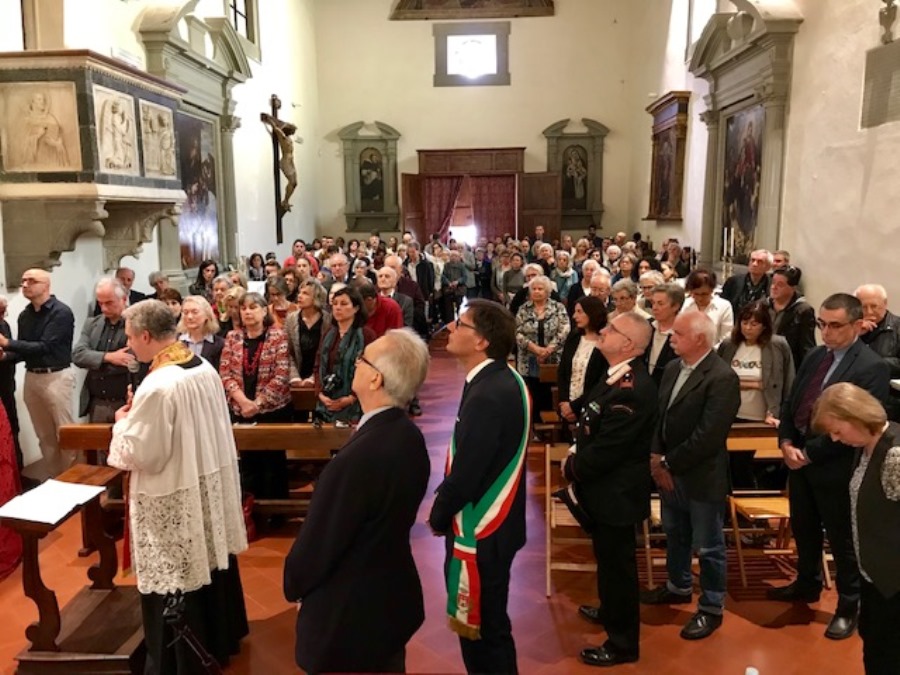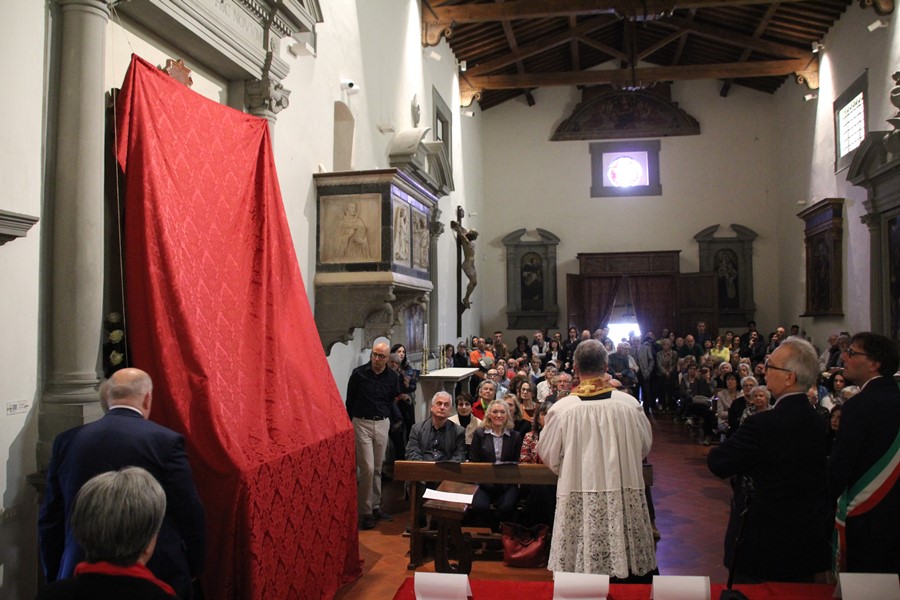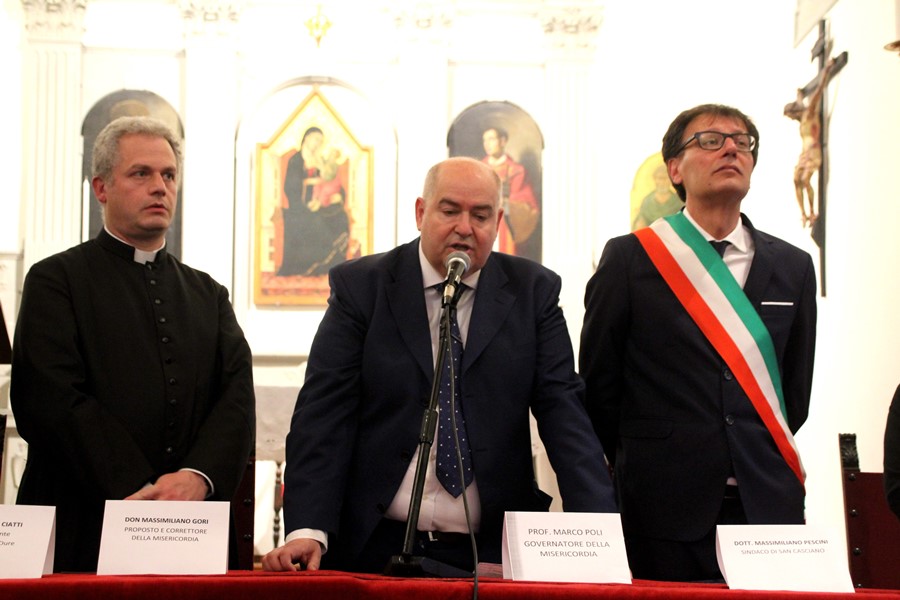 A distanza di otto anni, sabato 25 maggio, in una chiesa affollata, il Governatore dell’Arciconfraternita della Misericordia di San Casciano, Marco Poli, il custode Paolo Bacci e un Fratello, hanno lentamente abbassato il drappo che copriva l’altare dove ha trovato la nuova sistemazione la Croce.