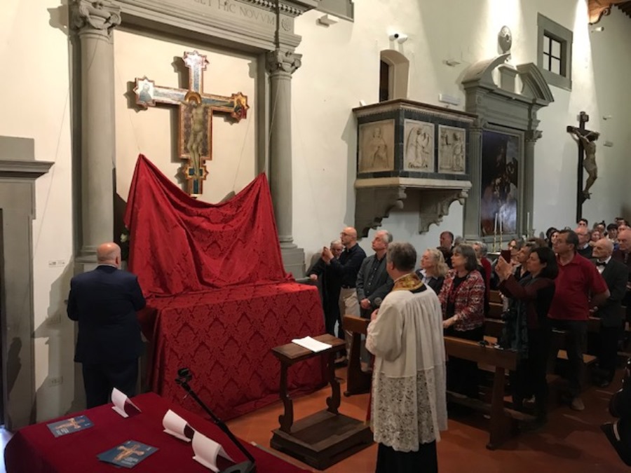 E con tanta emozione e commozione è stato possibile ammirare in tutto il suo splendore la Croce dipinta di Simone Martini. Restaurata e tornata “a casa”.