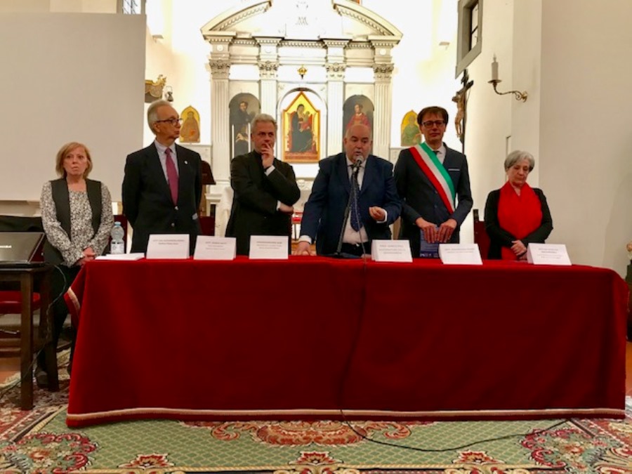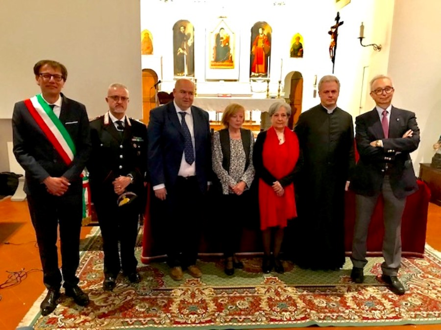 Erano presenti il sindaco Massimiliano Pescini, il Governatore Poli, Maria Pia Zaccheddu della Soprintendenza Archeologica Belle Arti e paesaggio, Marco Ciatti Soprintendente Opificio Pietre Dure, Alessandra Ramat Opificio Pietre Dure, Chiara Molducci assessore alla cultura, don Renzo Pulidori proposto Emerito, le Suore di Maria Santissima Consolatrice, Cristiano Iacopozzi presidente ChiantiBanca, Giuseppe Bonocore luogotenente dei carabinieri.
