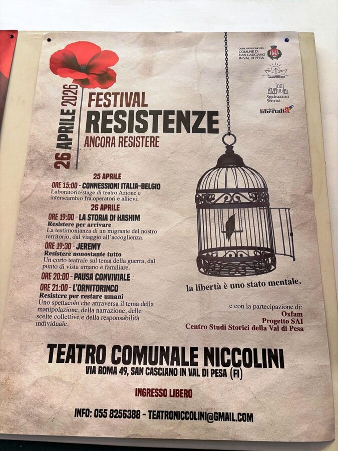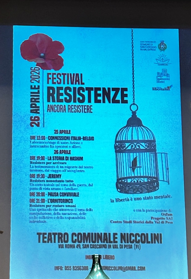 SAN CASCIANO – Si sono concluse lunedì sera, al Teatro Niccolini di San Casciano, le celebrazioni del Festa della Liberazione con il festival “Resistenze”, un appuntamento che ha saputo andare oltre la memoria storica per interrogarsi sul presente.