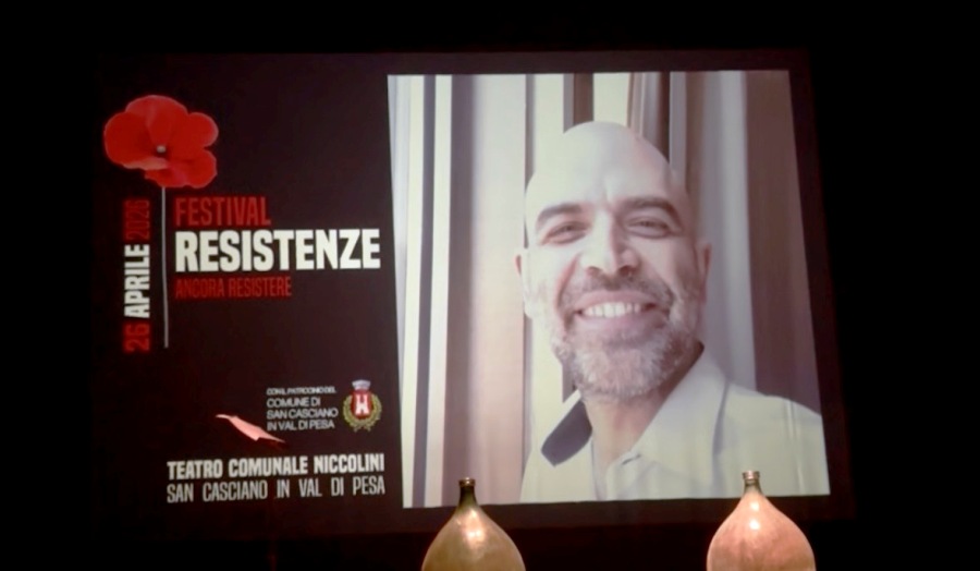 Il percorso della serata si è aperto con un videomessaggio di Roberto Saviano, che ha salutato il festival sottolineando il valore più profondo della parola “resistenza”: opporsi contro, restare saldi, essere lì mentre tutto sembra crollare, mentre tutto viene portato via velocissimamente non farsi ingannare e condividere storie: capire che la cosa più importante che possa contraddistinguere il nostro destino di Sapiens è non farsi ingannare, provare a rendere migliore questo spazio e dirsi anche che resistere è possibile solo se non si è soli.