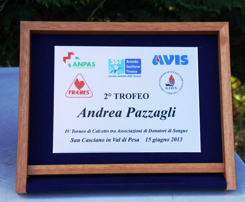 Il torneo era dedicato ad Andrea Pazzagli, donatore abituale del Centro Sangue di Santa Maria Annunziata che dava sempre il calcio d'inizio al torneo e che è purtroppo venuto a mancare due anni fa. Alle 16.30 il proologo con i piccoli calciatori della scuola calcio di San Casciano che hanno indossato le magliette con la scritta "Io sarò un donatore di sangue".