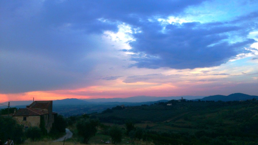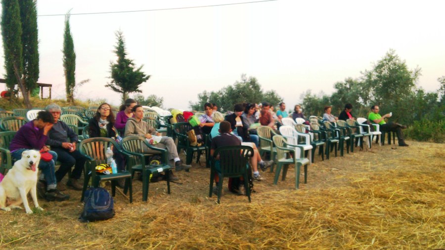 L'arcano è presto svelato: "Delizioso e coinvolgente lo spettacolo di visual theatre messo in scena dall'associazione Laboratorio Amaltea e da Jack and Joe Theatre, un racconto sulle tradizioni della mietitura, un concerto di musiche popolari toscane. E che dire del panorama che faceva da sfondo… il profilo all'orizzonte spaziava ben oltre la valle della Pesa e San Quirico in Collina, dal Monte Albano fino al Monte Pisano e alle Apuane".