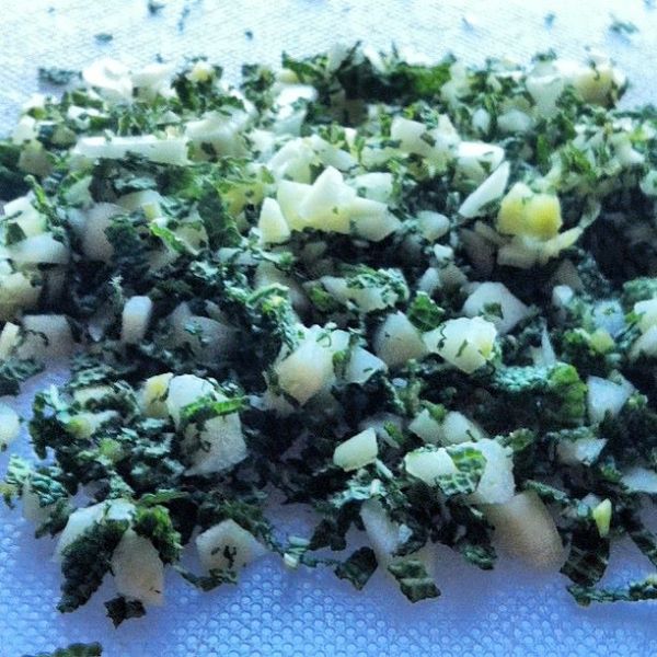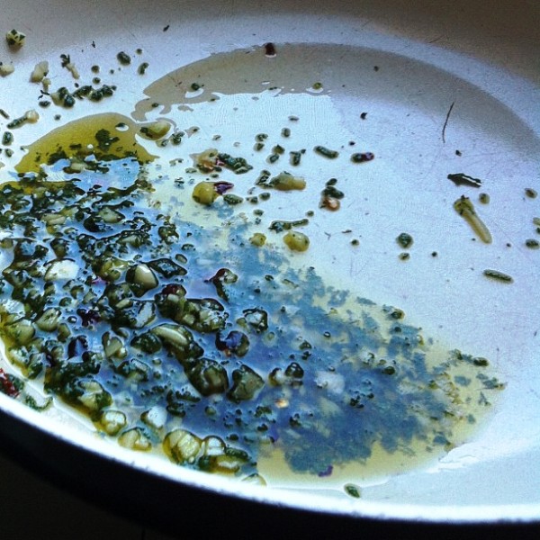(1) Si trita finemente aglio, salvia e si soffriggono in abbondante olio con una manciata di peperoncino.